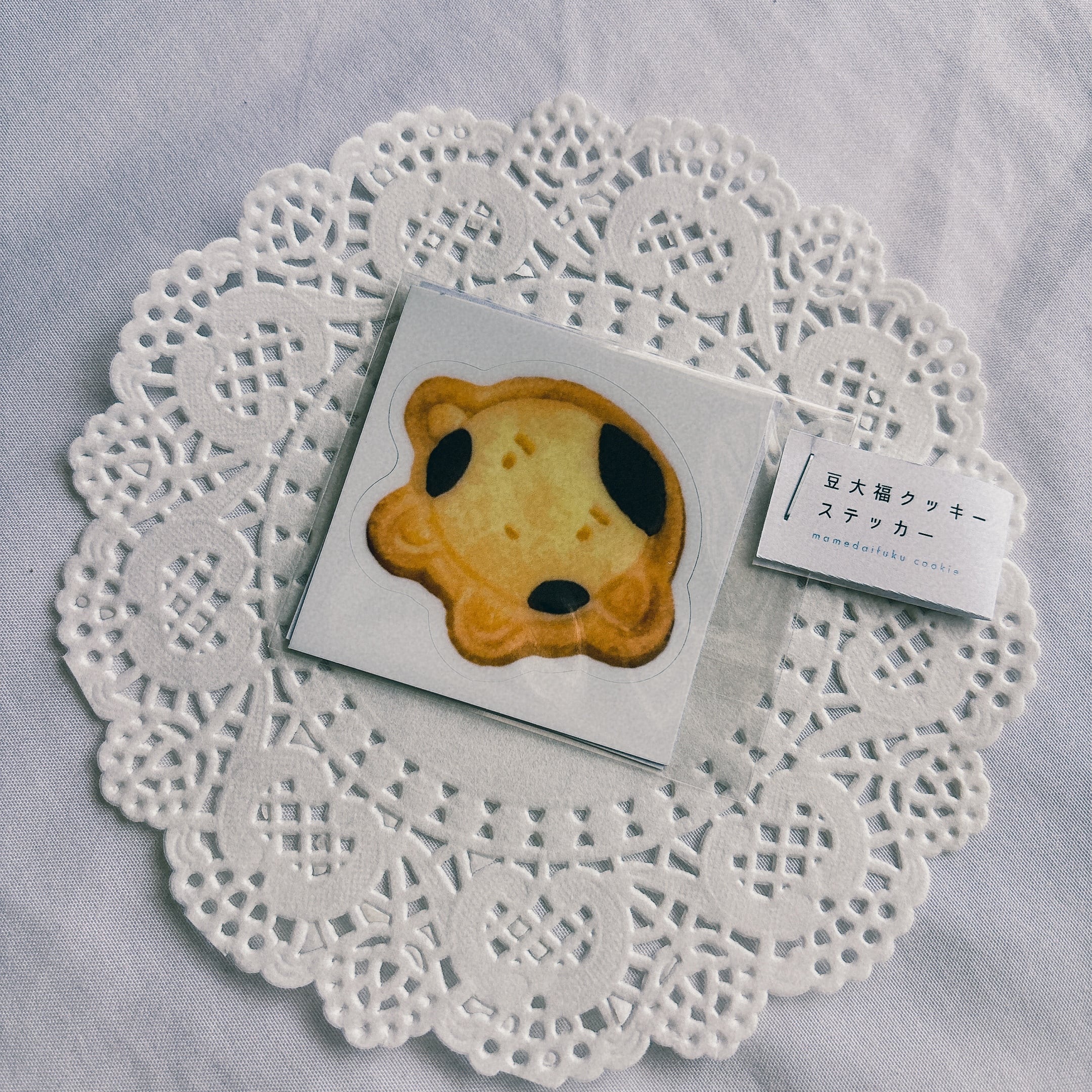 kissshot様9周年イベントで展示販売していた豆大福クッキーのステッカーです。 5cm×5cm以内のサイズ感。 おいしいあのクッキーを永遠に…… ※受注商品とご一緒に会計された場合、同梱での発送となります。